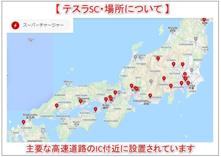 テスラ・デスティネーションチャージングのステーション一覧は、こちら(テスラ公式HP・デスティネーションチャージングステーション一覧)から確認もできます。