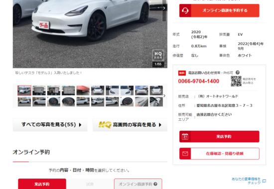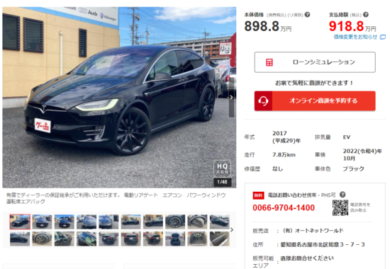 テスラの相談窓口ではテスラの中古車の販売も行っております。