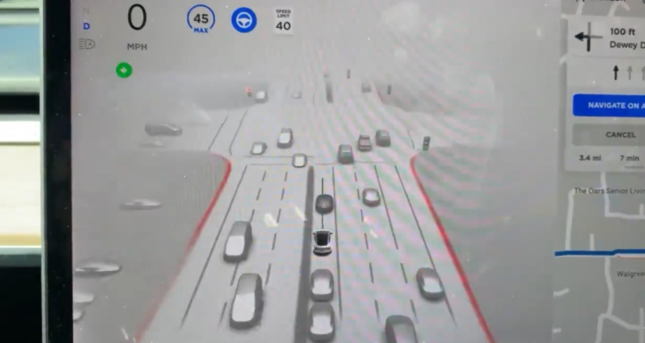 現時点では、アメリカのFSD購入者の車両に対して、完全自動運転のボタンが押せるプログラムを配信しました。(テスラ車はネットワークに接続されているので、スマートフォンのアップデートと同様にこういったことが可能)